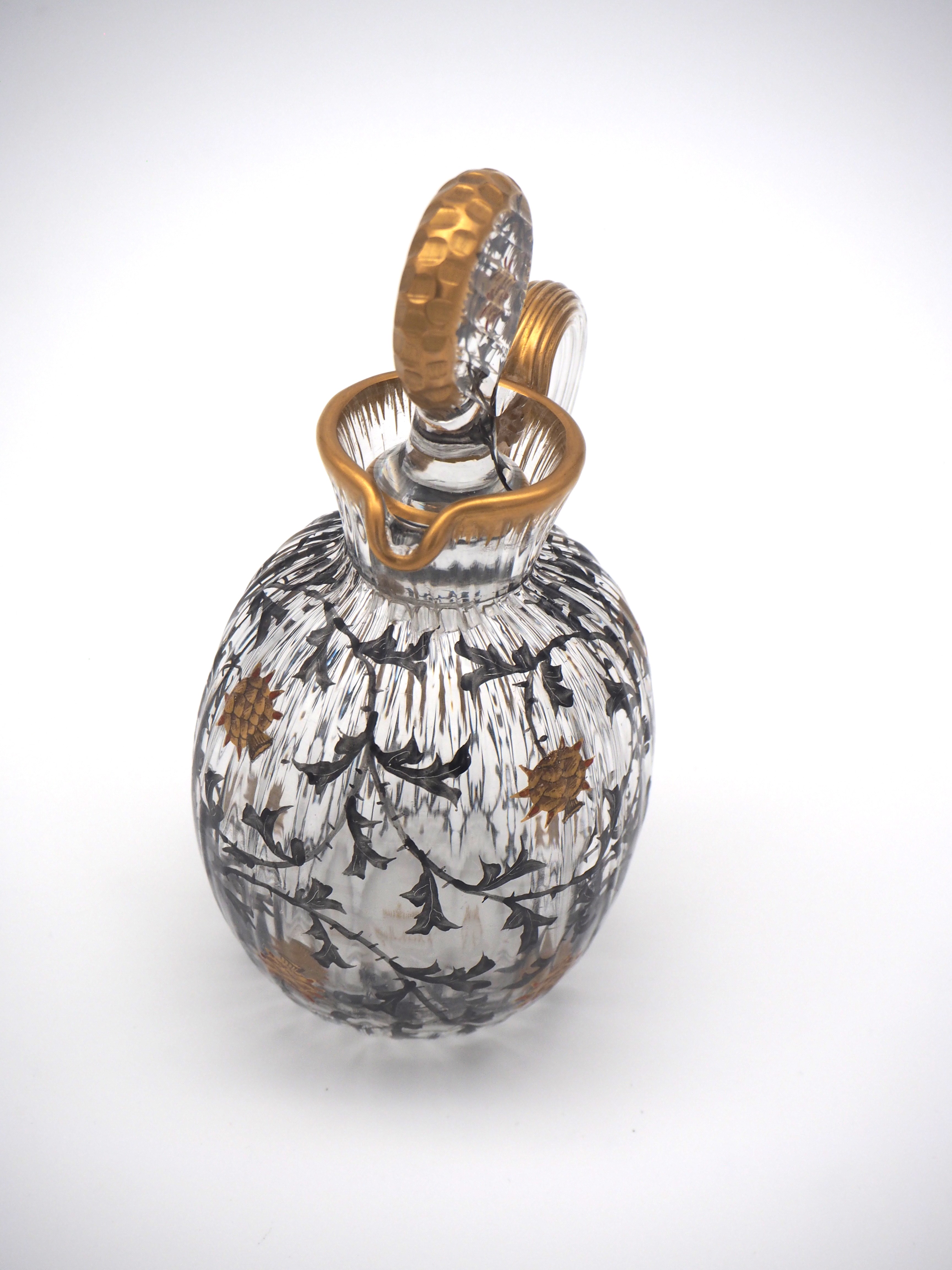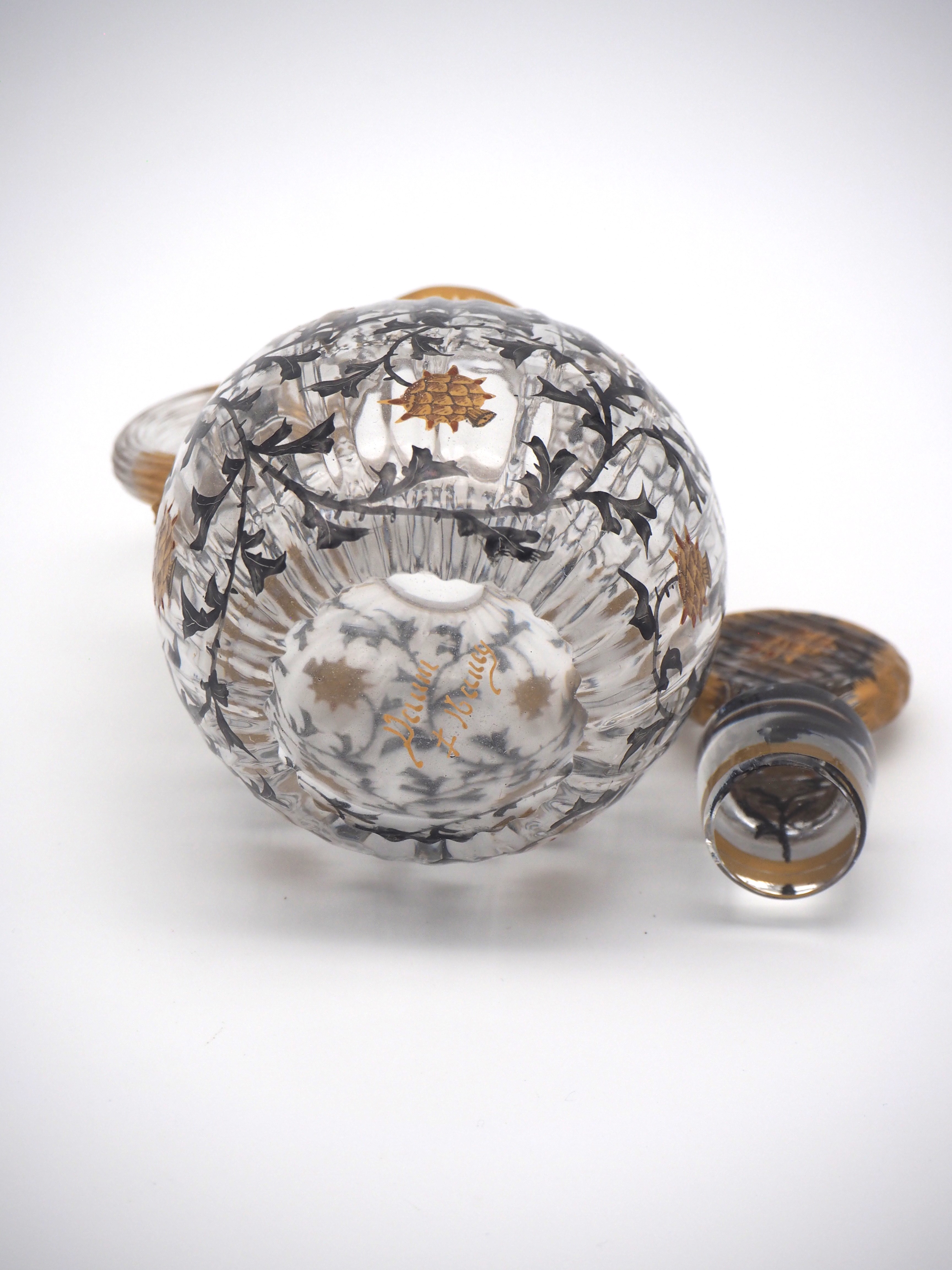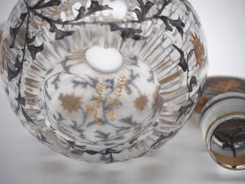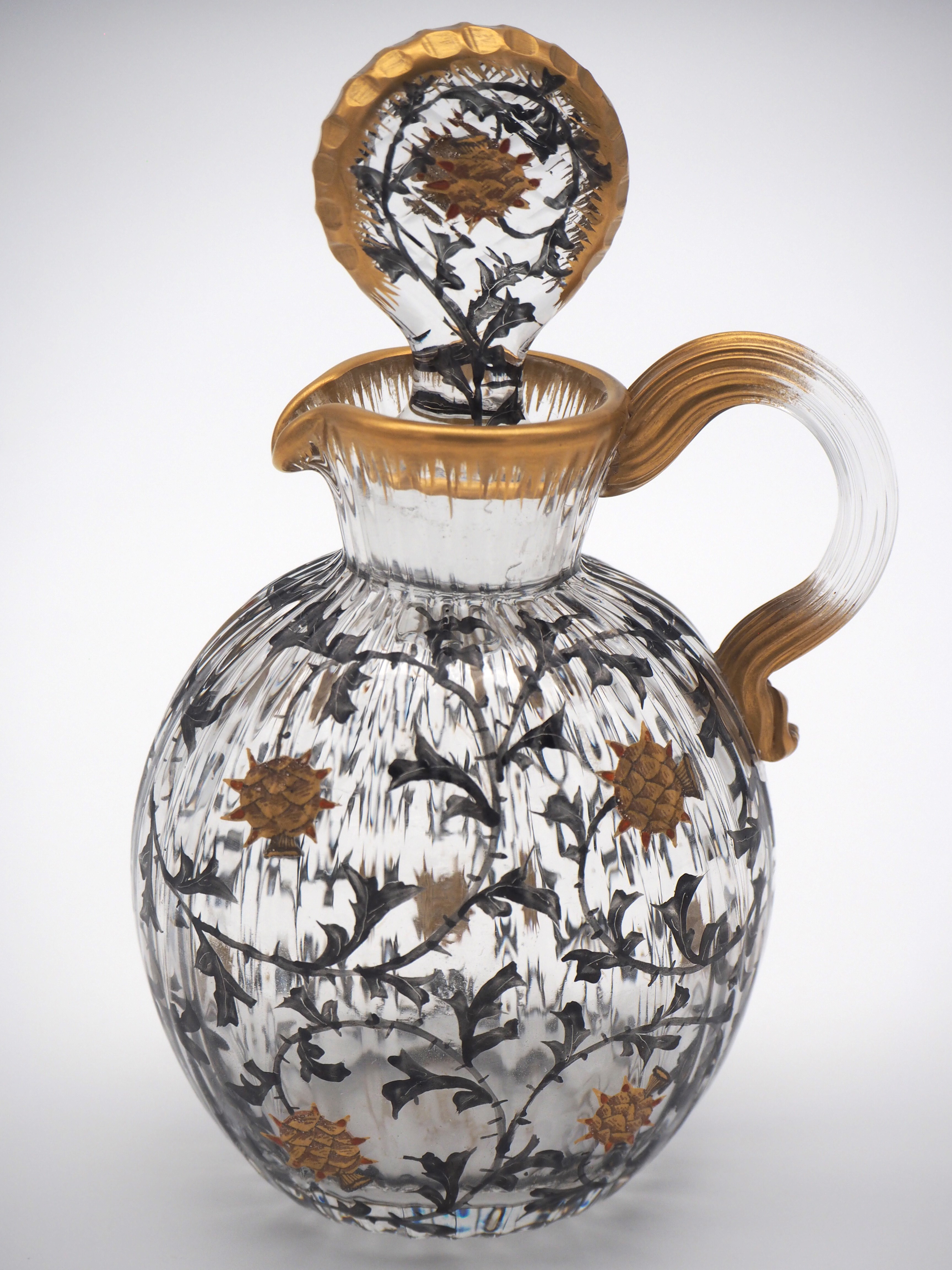 この作品について問い合わせる ドーム・ナンシー アザミ文様 ピッチャー(小) (技法:金彩・エナメル彩) H.14.5cm, W.9cm SOLD