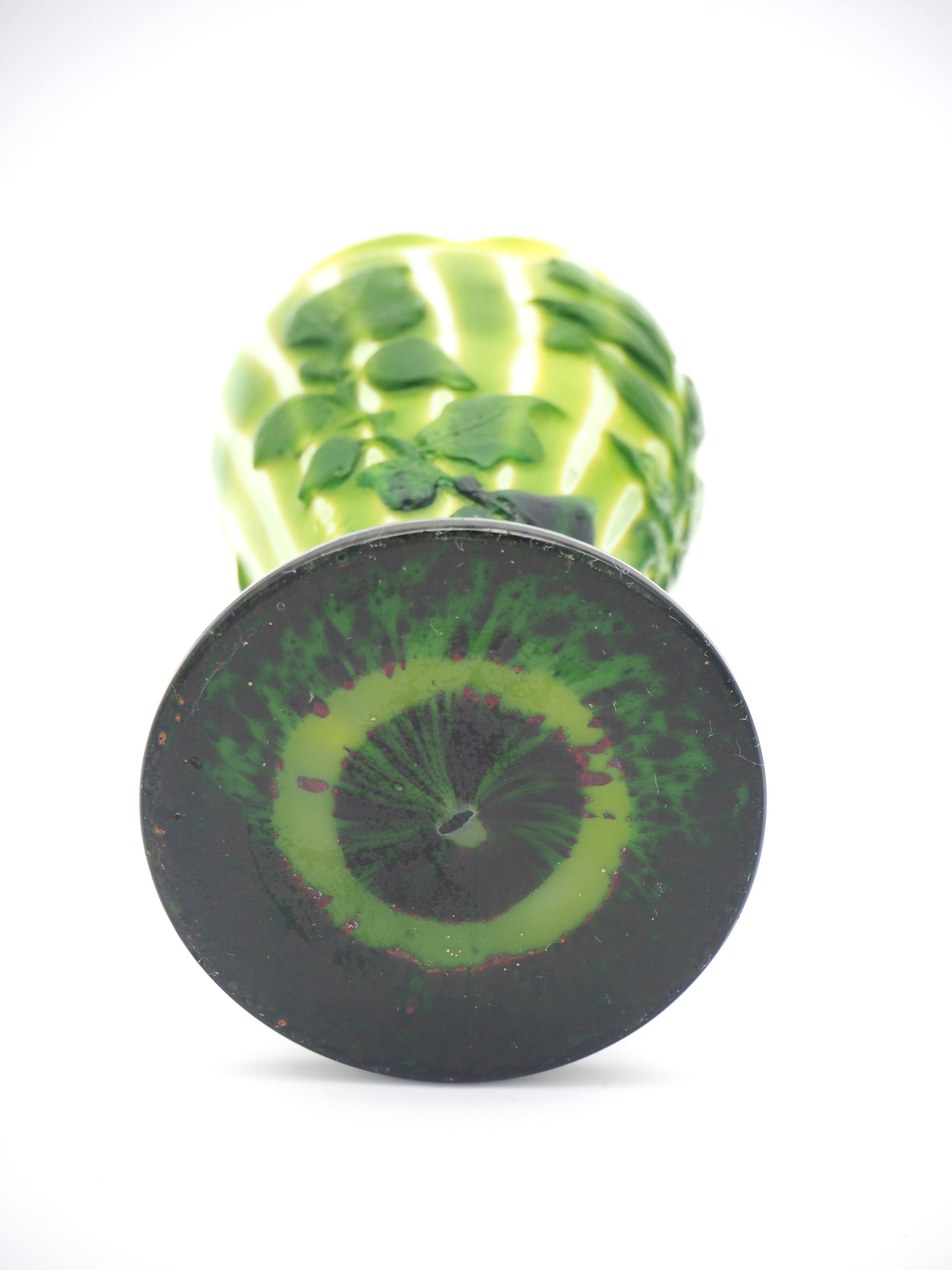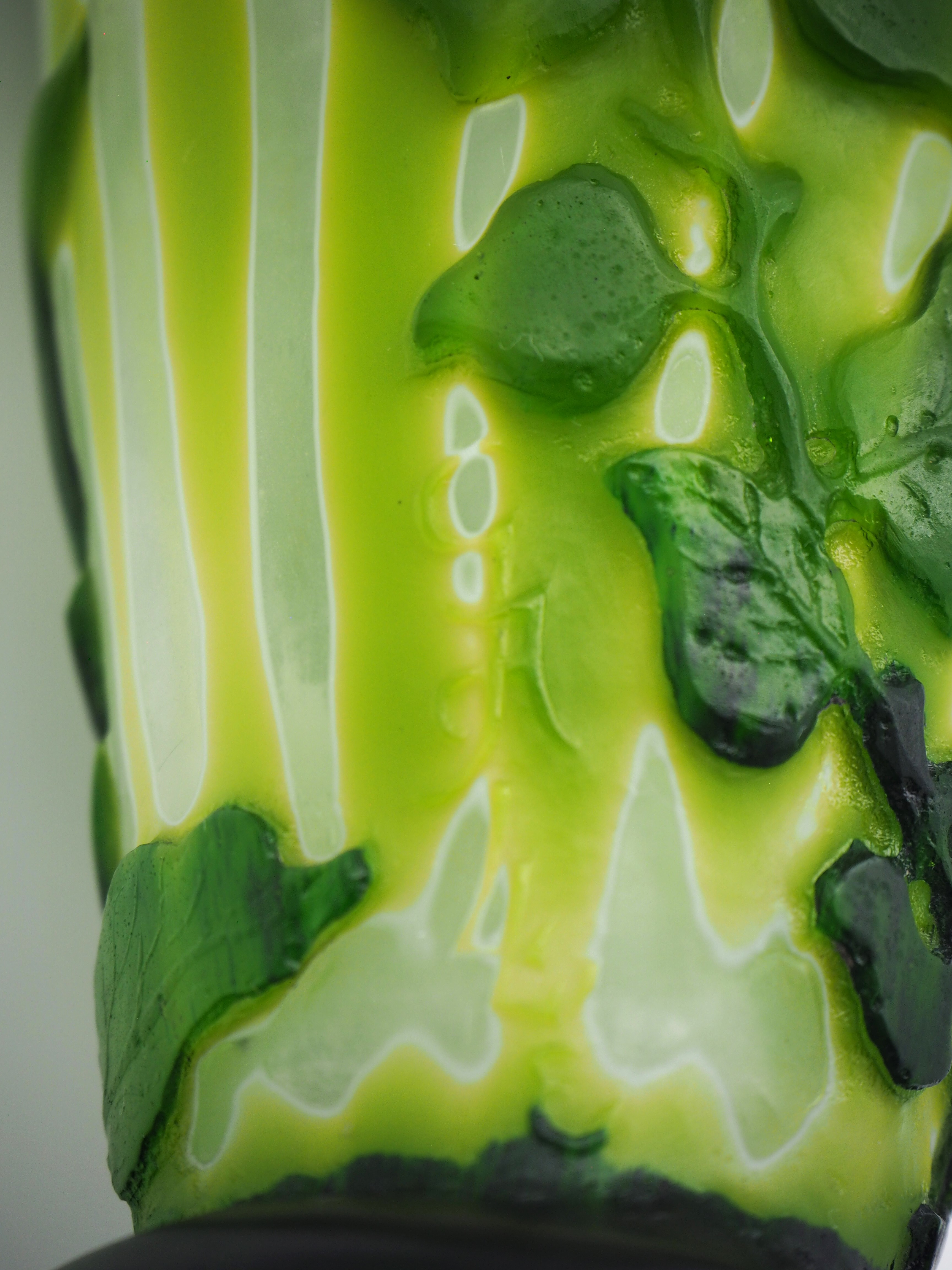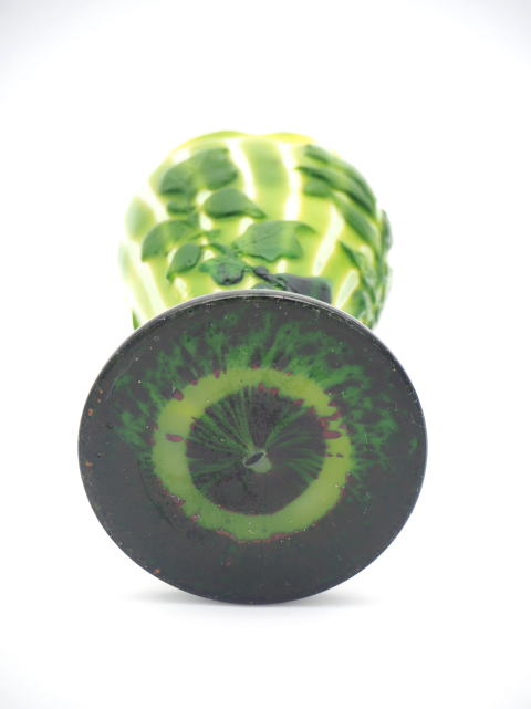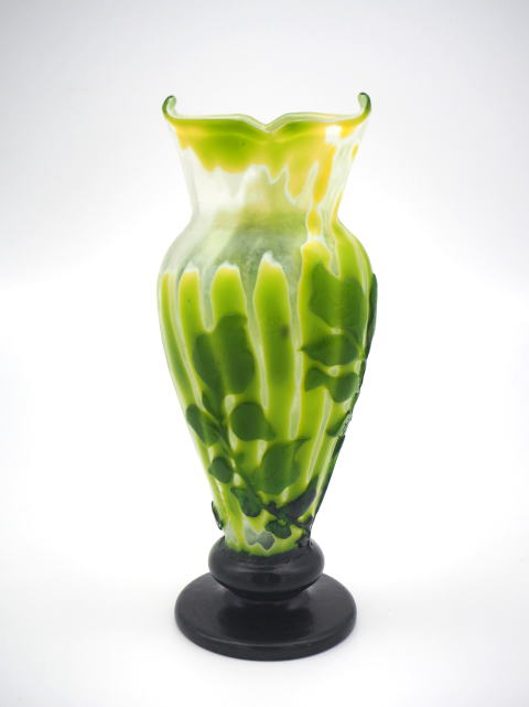 この作品について問い合わせる エミール・ガレ 桔梗文様 マルケトリ花瓶 (技法:マルケトリ・酸化腐食彫り) H.24cm W.13cm
