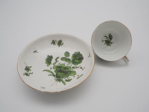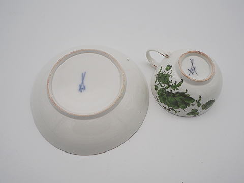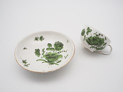 この作品について問い合わせる マイセン グリーン花ブーケ文様 カップ&ソーサー 18世紀 カップD.7.2cm ソーサーD.12.2cm