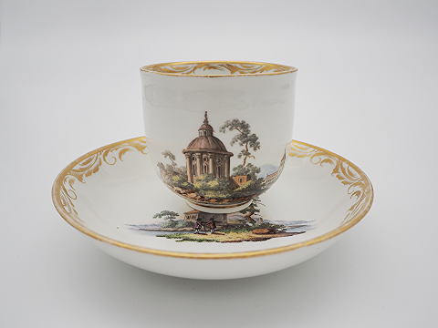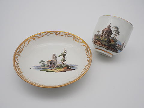 この作品について問い合わせる ロイヤルヴィエナ 風景文様 カップ&ソーサー 19世紀 カップD.7cm ソーサーD.13.5cm
