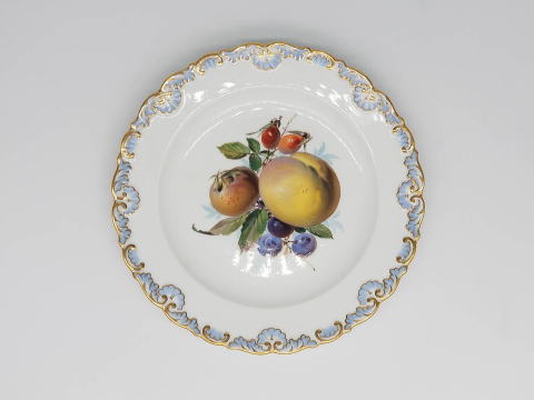 この作品について問い合わせる マイセン フルーツ文様 ディナー皿① D.21.5cm \80,000 (税込 \88,000)