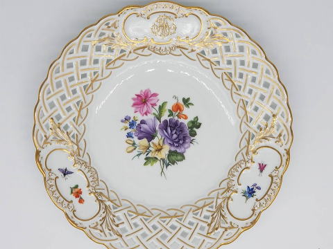 この作品について問い合わせる マイセン 花ブーケ文様 透かし皿 D.20cm \43,000 (税込 \47,300)
