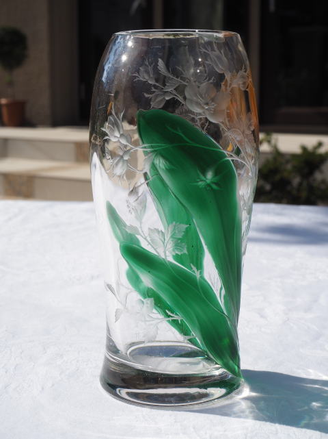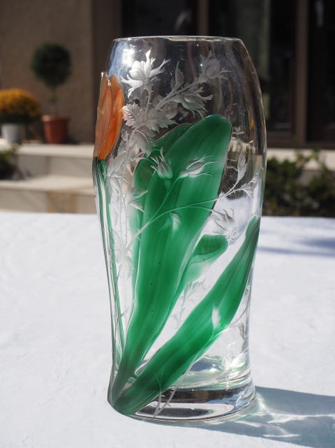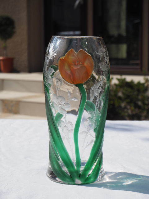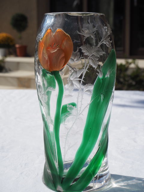 この作品について問い合わせる モーゼル チューリップ文様 マルケトリ花瓶 H.16.5cm \355,000 (税込 390,500)